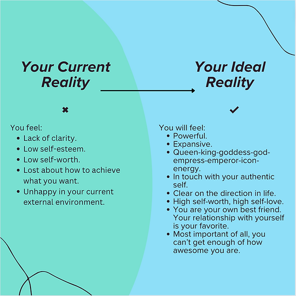 We’re gonna have Beyonce-level confidence on lock and Matthew McConaughey bravery on tap!!! We’re gonna make all the negativity talk a thing of the past. My clients’ internal end results include: clarity on direction in life, increased self-awareness, solid boundaries, no more people-pleasing, serene routines, increased self-worth, making themselves their best friend, conscious relationships, healing past traumas, & developing compassion for themselves, others, and the world as a whole.🌻 My clients' external end results include: more money, healthier bodies, healthier/better/more aligned relationships, leaving toxic relationships, getting their dream job, and sooo much more.